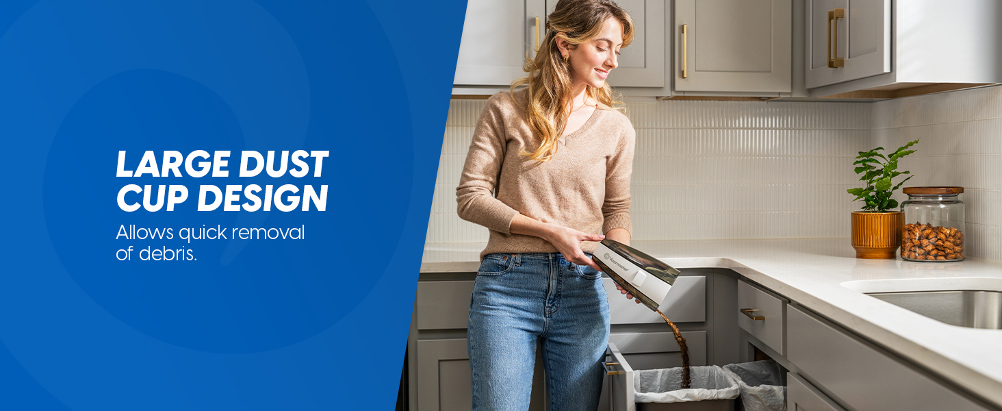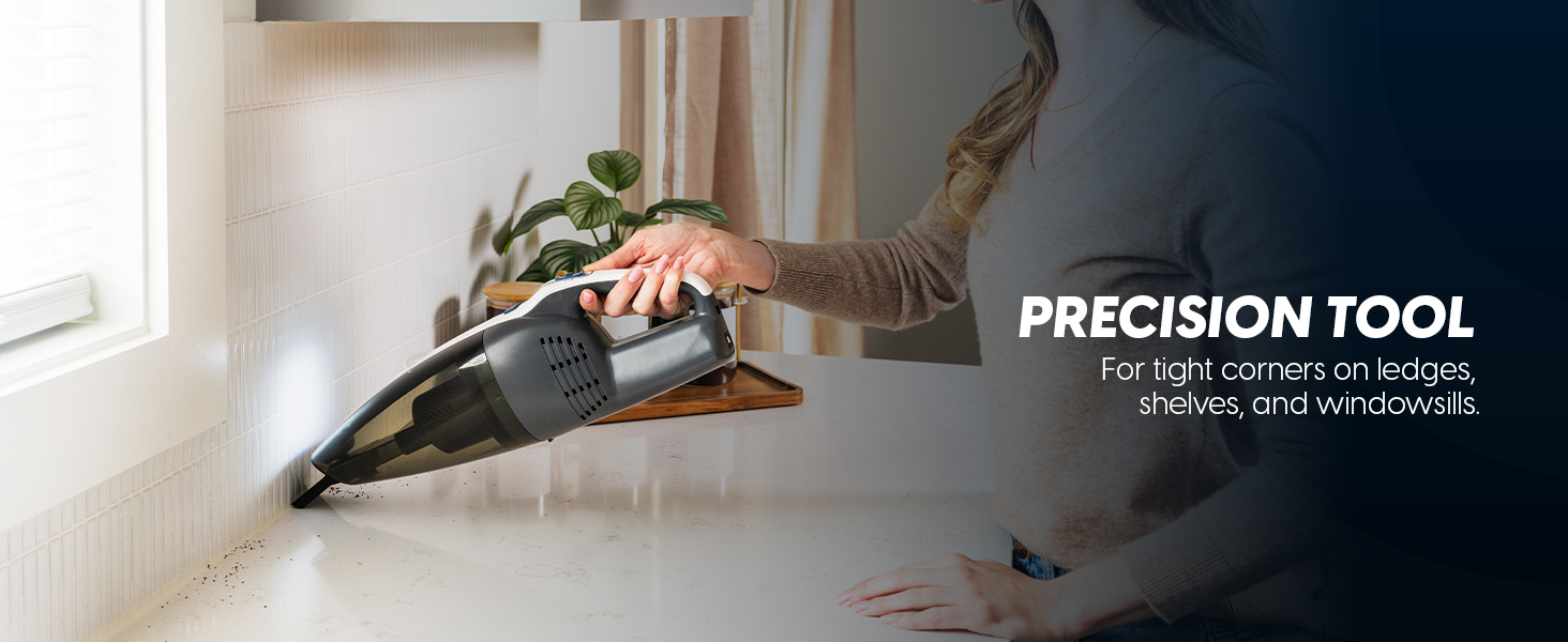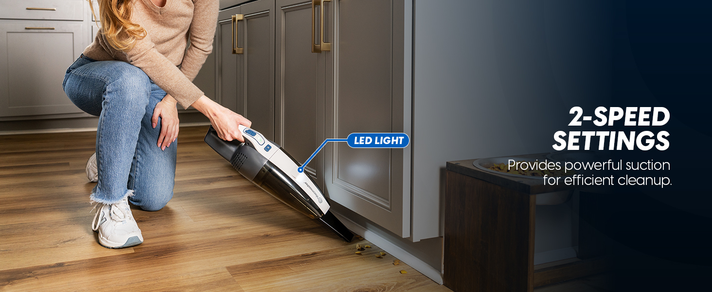 Featuring a lightweight design and ergonomic handle, the Vacmaster hand vac makes it easy to clean stairs, furniture, car interiors, and hard-to-reach areas without fatigue. The built-in LED light provides bright visibility, helping you spot dust and dirt in dark corners or under cabinets.