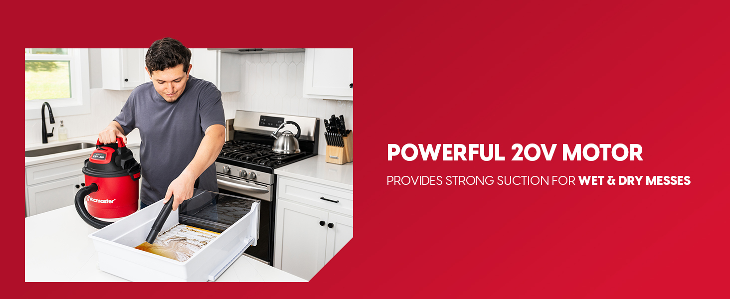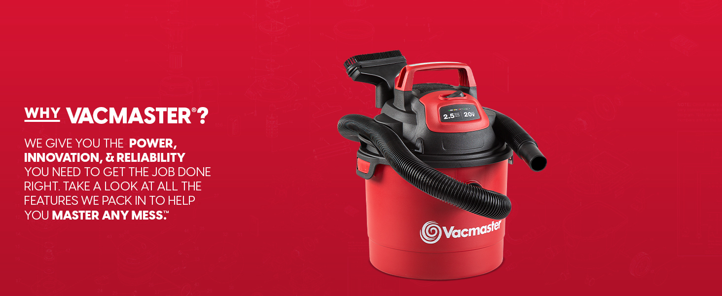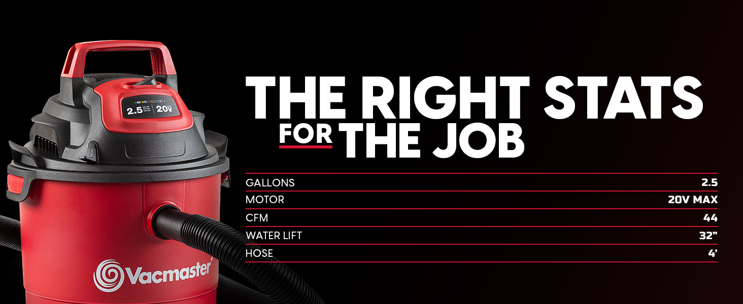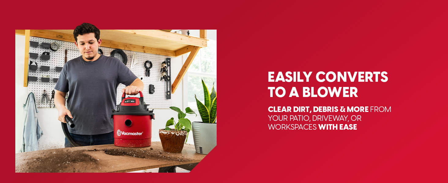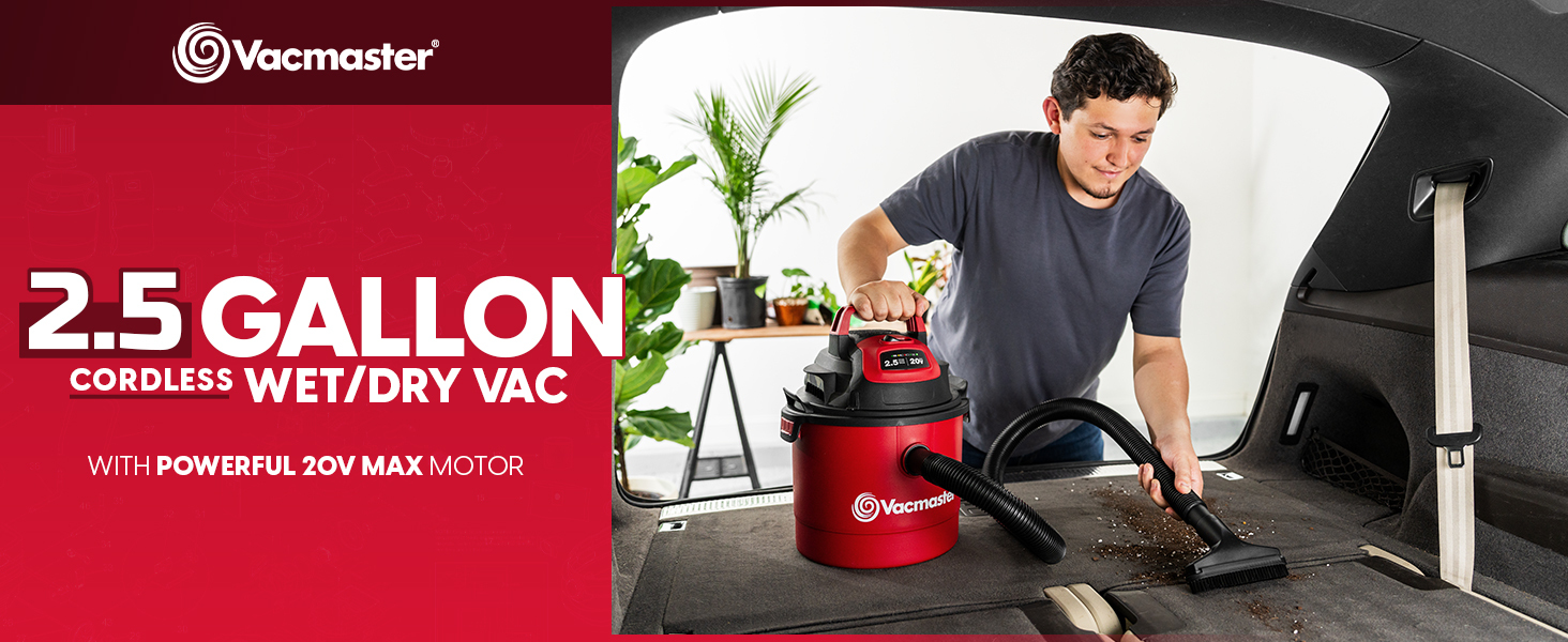 Power meets portability with the Vacmaster 20V 2.5-Gallon Cordless Wet/Dry Vac — the perfect all-in-one cleaning solution for your home, car, or garage. This compact yet powerful vacuum delivers 44 CFM‡ of airflow to handle daily messes with ease, and easily transforms into a blower for added versatility.