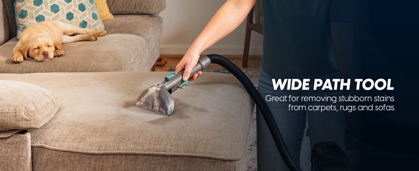 The included tool set ensures you always have the right attachment for the job, featuring a 2-in-1 tough stain tool, wide path tool, and crevice tool.