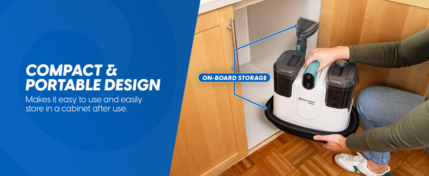 Compact, portable, and ready when messes strike, the Vacmaster 600 Series Spot Cleaner makes deep cleaning simpler, faster, and more convenient.