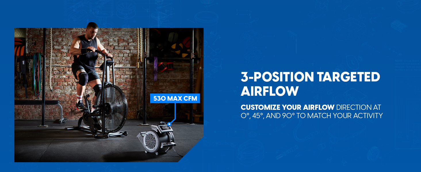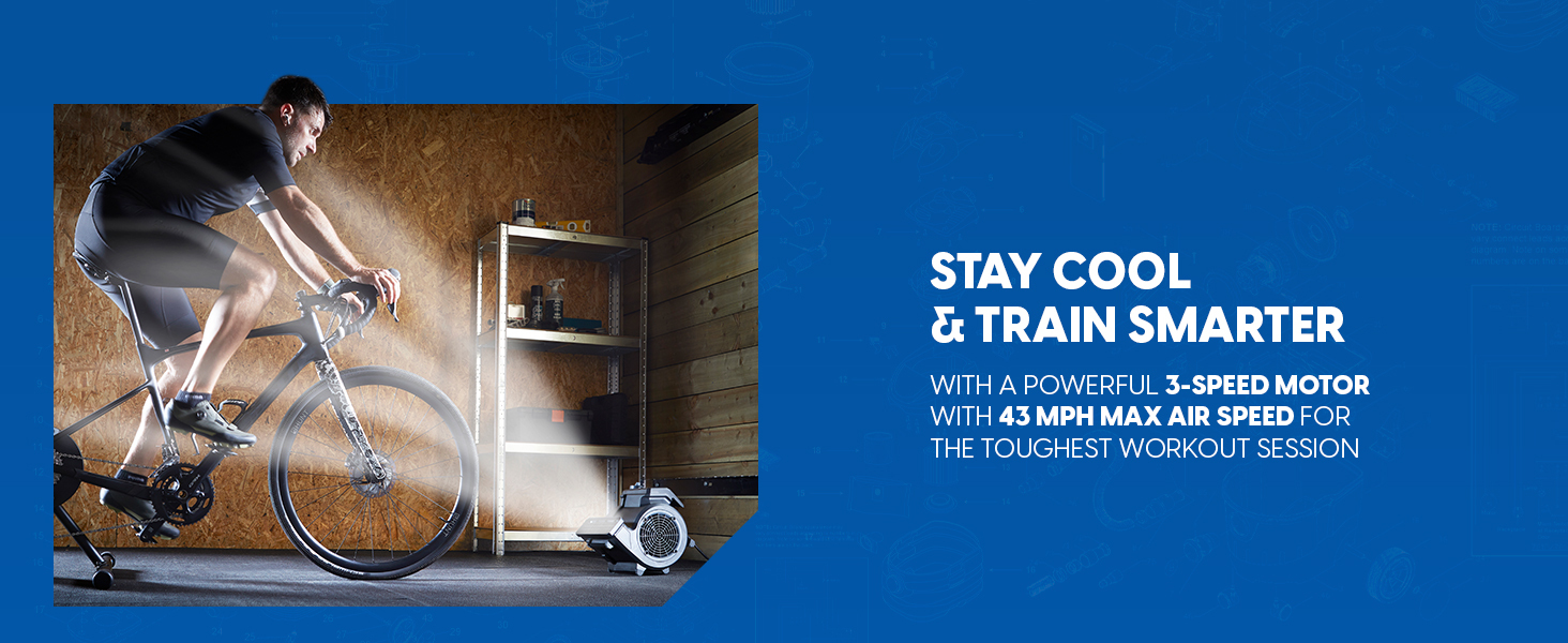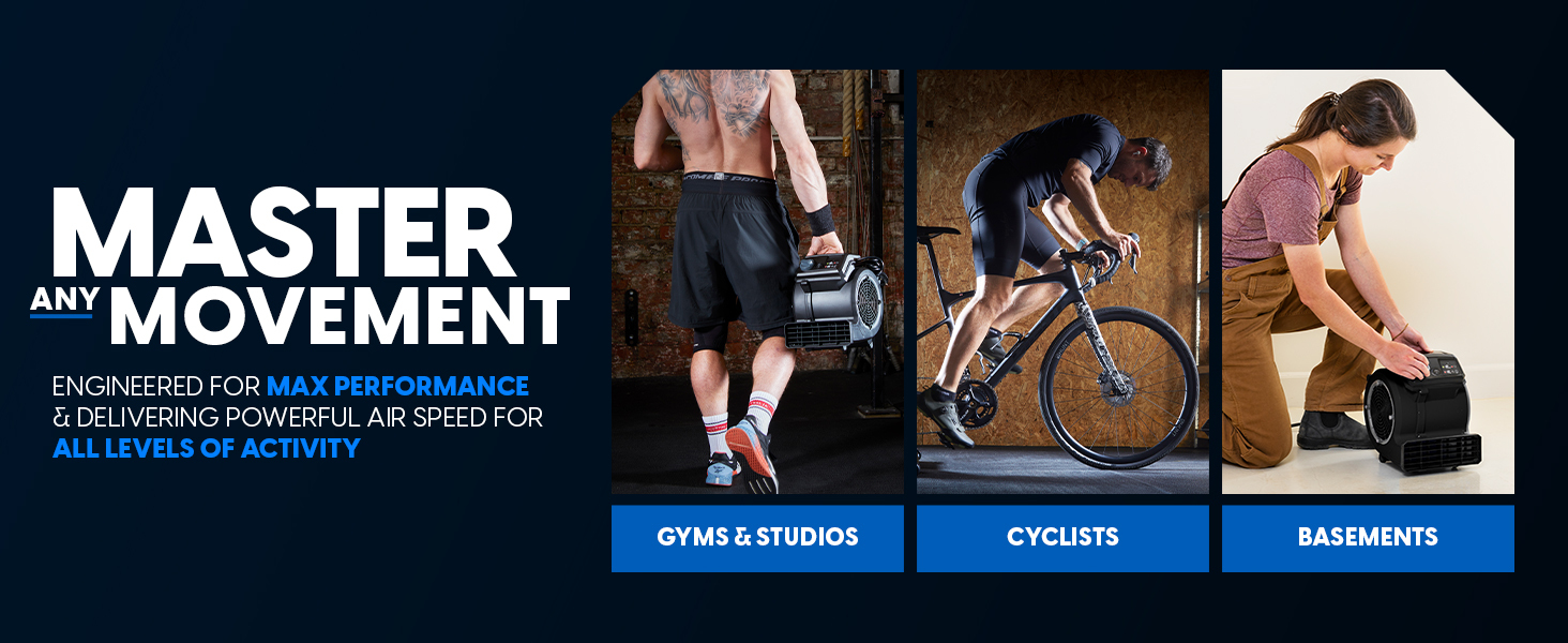 Use it to power through tough trainer rides by regulating your body temperature, cool down after intense workouts, and speed-dry shoes, gloves, and workout gear. The 3-speed control and 3-position airflow design let you direct air exactly where you need it, while the included remote control allows you to change speeds without disrupting your routine. A 12-foot power cord ensures flexible placement in larger garages or gym spaces, while the skid-resistant rubber feet provide secure placement on any surface.