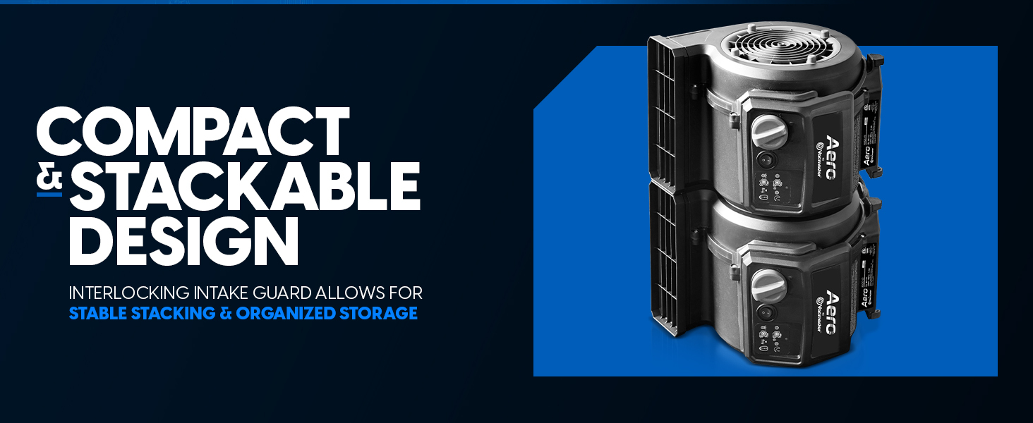 - STACKABLE STORAGE: Interlocking intake guard allows space-saving multi-unit storage