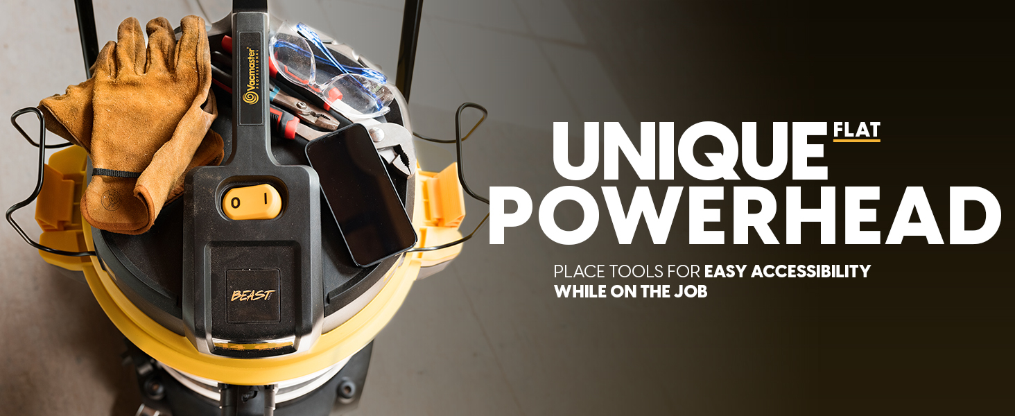 - Unique Flat Power Head Design to place tools for easy accessibility while on the job!