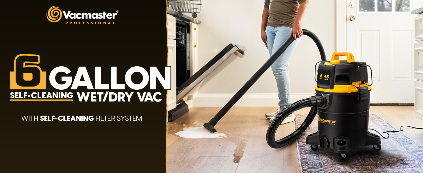 Meet the Vacmaster Professional VDK611PF 0201, your ultimate solution for heavy-duty cleanup. Built for jobsite toughness and home versatility, this 6-gallon wet/dry vac is engineered to take on everything from fine dust to liquid spills without missing a beat. • 4.5 Peak HP Motor: Delivers powerful suction to handle tough messes with ease. Engineered for performance and durability, its 4.5 Peak HP motor delivers powerful suction that effortlessly removes debris, liquid spills, and more. Increase cleaning efficiencies with the self-cleaning filter system, ensuing that airflow remains unimpeded, and maintaining an exceptional level of suction power by preventing filters from clogging during operation. This vac features a high-efficiency cartridge filter coupled with a dust bag capable of capturing fine dust particles down to 1 micron in size. With 11 accessories, including a locking hose, this vacuum adapts to a variety of cleaning tasks, making it your go-to tool for any situation. With on-board hose, power cord, and accessory storage, you can keep all your attachments organized and within reach. And when it's time to tackle outdoor debris, simply convert this vacuum into a powerful blower. Whether you're a contractor, DIYer, or just serious about clean, the Vacmaster Professional delivers rugged reliability, high-performance cleaning, and smart features that save you time and effort.