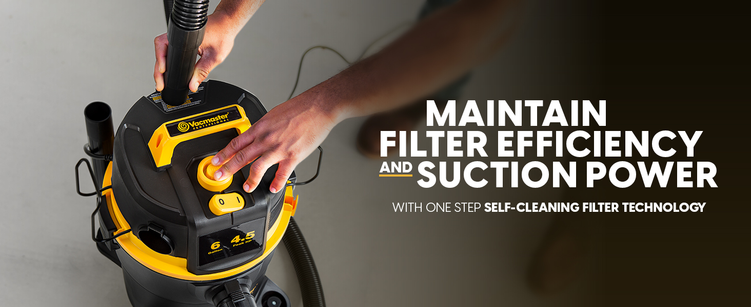 - Self-Cleaning Filter System Improves Airflow and Maintains High Level of Suction Power During Operation by Preventing Clogged Filters